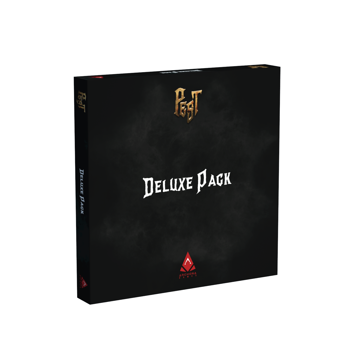 Deluxe pack add-on for Pest, including dual-layer player boards and wooden player tokens.
