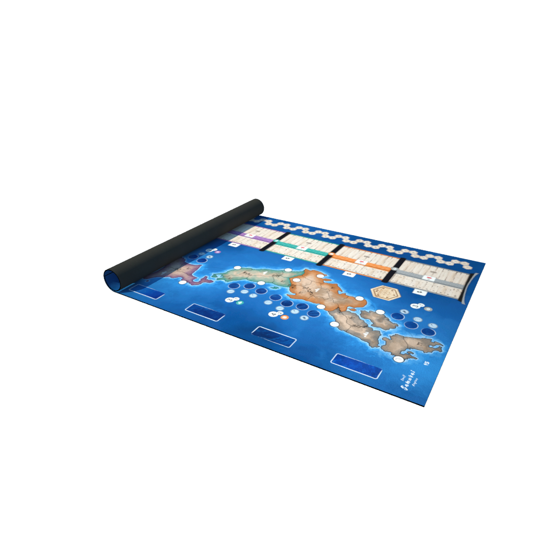 It features the full map and all the slots for the base game components, the 5th player expansion, and all the variants in one convenient place. It also brings a fresh look to the game!